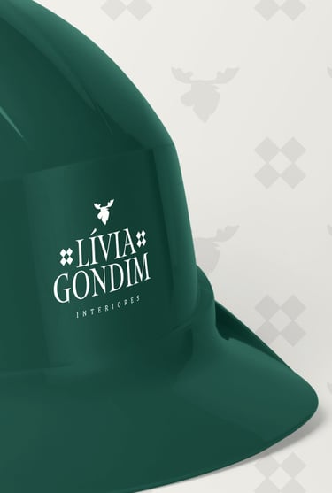 Para representar a força e a conexão com texturas naturais e estilo de mobiliário, incorporamos o símbolo do alce. O padrão xadrez, sutilmente usado na marca, traz à tona a referência de pensamento estratégico de alto nível — uma qualidade que Lívia traz consistentemente para suas produções.